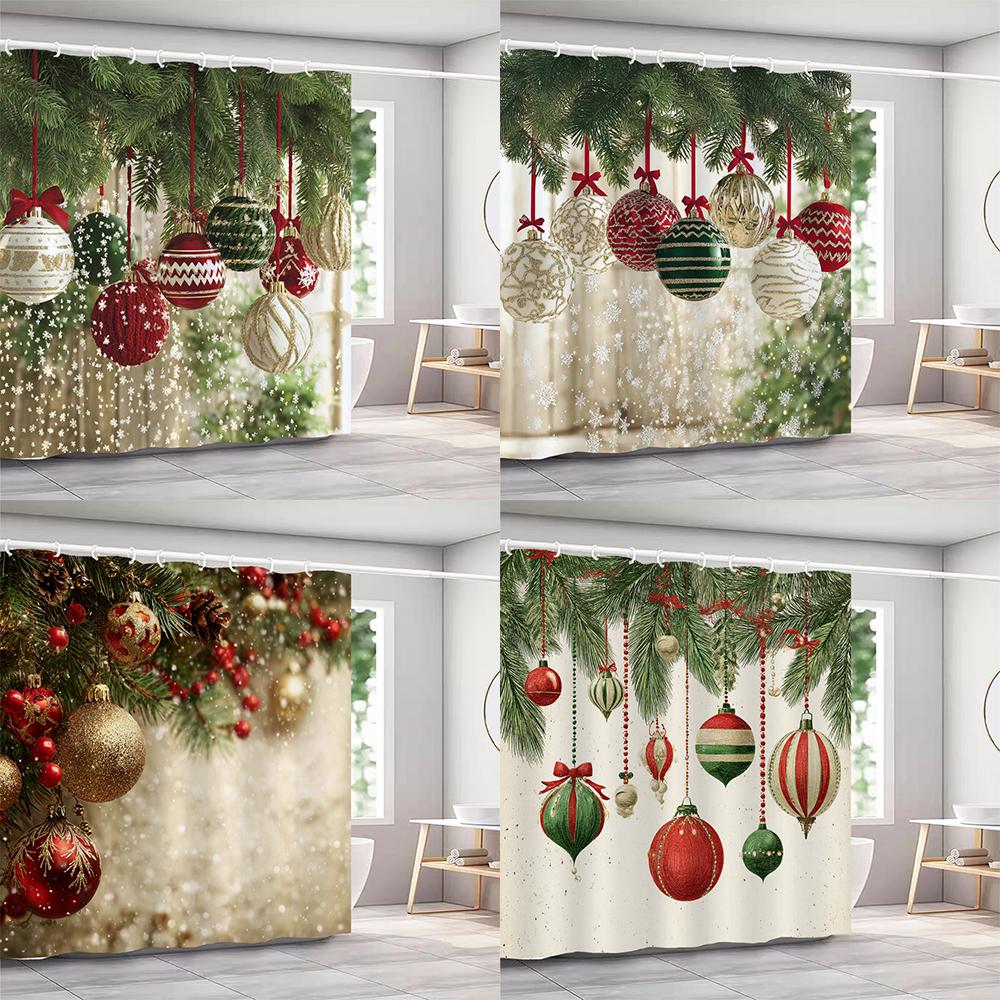 GAEChristmas Shower Curtains with hooks Christmas tree and bells Shower Curtain Polyester Bathroom Curtain home Decor Curtain