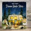 Vintage Camper Shower Curtain 180x180cm – Happy Campers, Machine Washable, 12 Hooks Bath decorative shower curtain