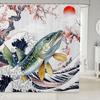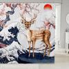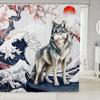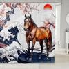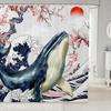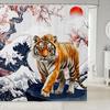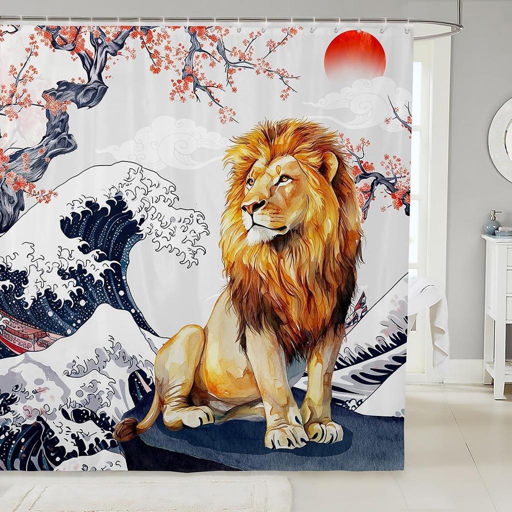 Cartoon Lion Shower Curtain for Kids Boys Girls Japanese Style Waterproof Bathroom Curtain, Vintage Ukiyoe Bath Curtain Ocean