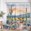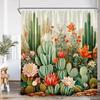 Cactus Cartoon Shower Curtain Desert Green Plant Watercolor Boho Vintage Bathtub Curtain with Hook Home Decorations for Bathroom