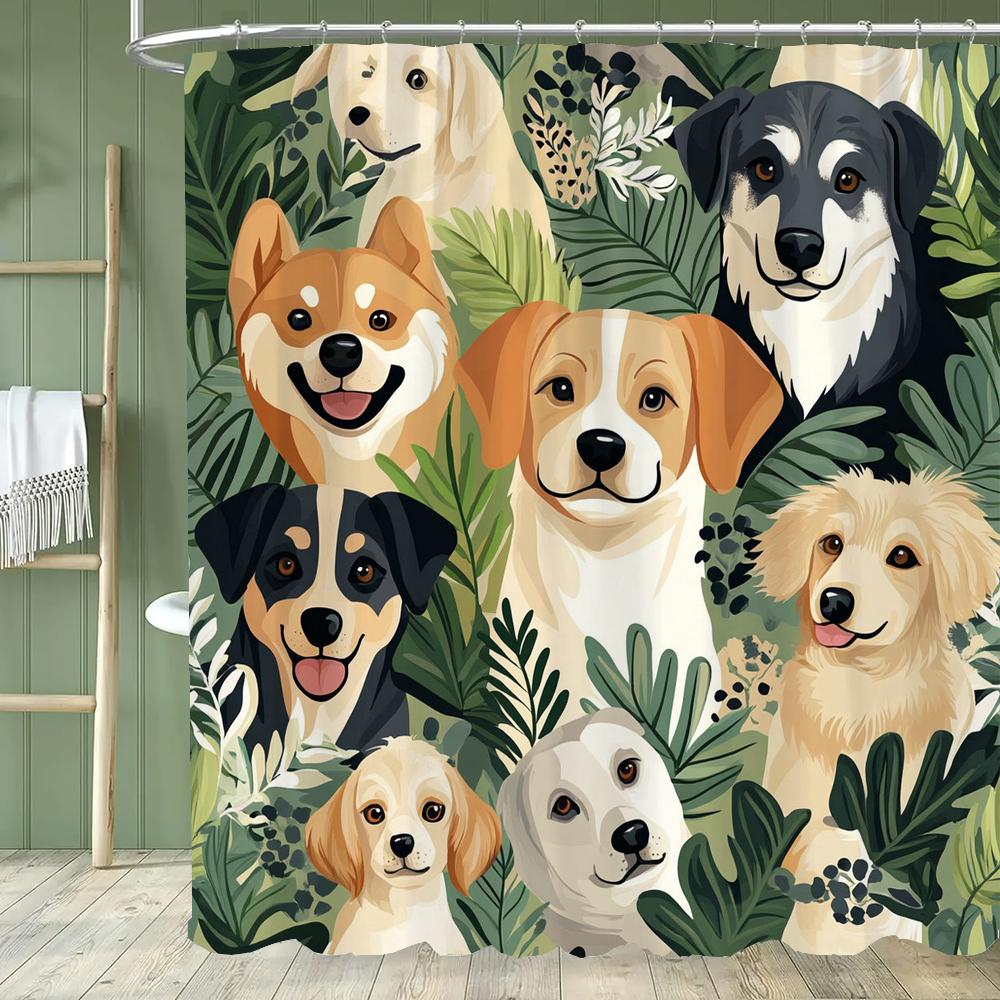 1 piece Cartoon Cat Shower Curtain, Cute Cat and Dog Bathroom Decorative Curtain, Home Printed Polyester Curtain with Hooks