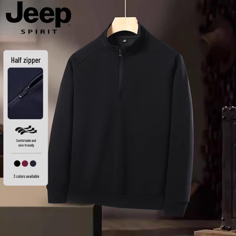 JEEP SPIRIT Men's Pure Cotton Half-Zip Stand-Collar Sweatshirt