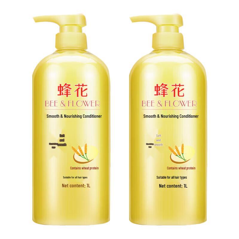Indulge your hair with Bee & Flower Smooth & Nourishing Hair Conditioner. This rich formula, enriched with wheat protein, is designed to strengthen hair, prevent breakage, and restore vitality to dull hair, leaving it smooth and lustrous. Each pack contains two 1-liter bottles, perfect for a long-lasting supply.