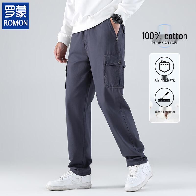 ROMON Men's Pure Cotton Multi-Pocket Casual Work Pants