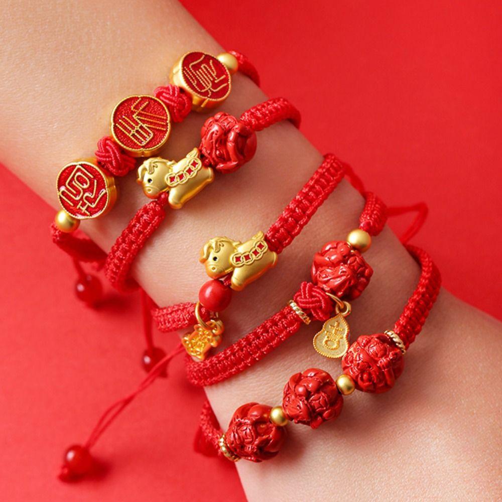 Hand-woven Good Lucky Bracelet Calabash Chinese Red Handrope Zodiac Horse Bracelet Spring Festival