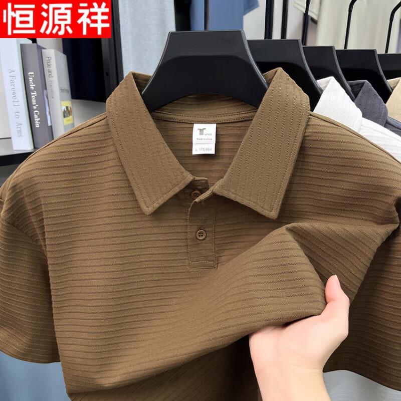 Hengyuanxiang Men's Striped Business Casual Polo Shirt