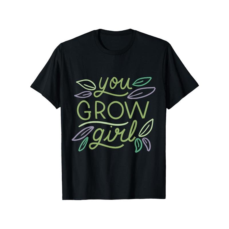 Women's Oversized Gardening Slogan T-Shirt Plant Design You Grow Crew Neck Tee Black Green Pink Gift for Plant Lovers
