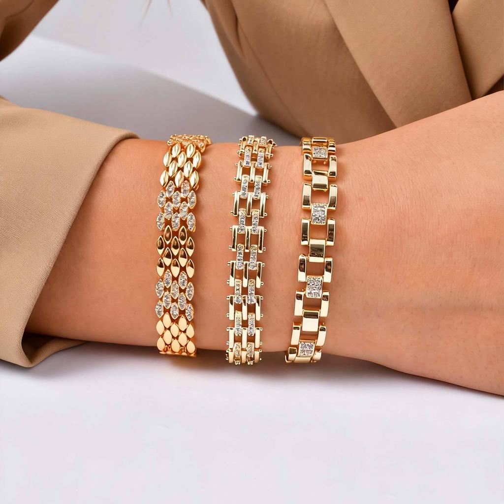Wind Copper Inlaid Zircon Strap Bracelet Gold, High-End Versatile Women'S Jewelry Pbr-300