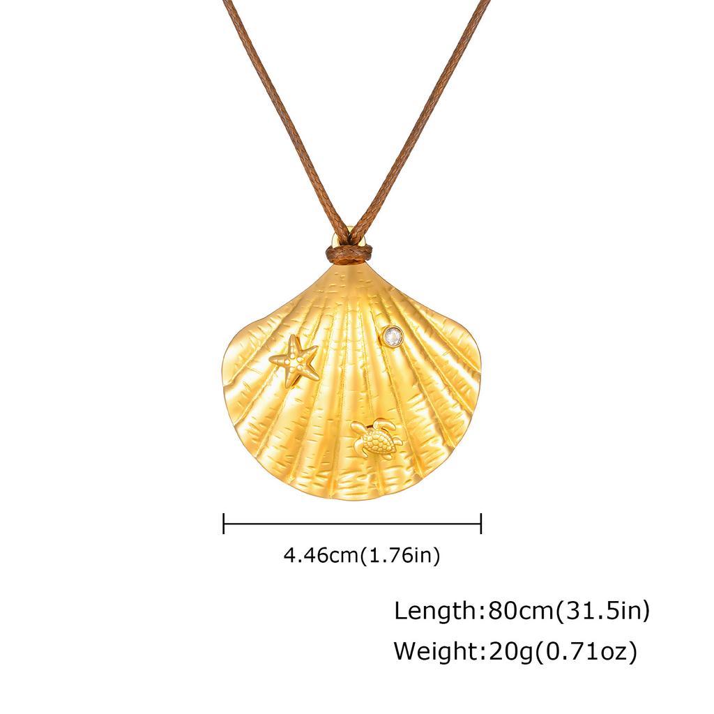 Summer Seaside Vacation Women'S Essential Accessories, Ocean Wind Shell Wax Rope Necklace, Stainless Steel Jewelry 2652