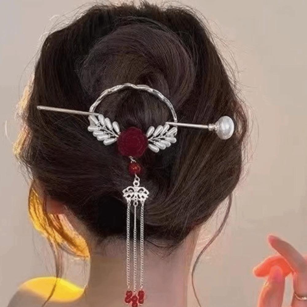 Vintage Hanfu Hairpin Elegant Pearls Hair Sticks Gift Floral Hair Accessory Wedding