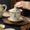 Jingdezhen-Bambu Şapkalı Seramik Çay Kupası, Geleneksel El Yapımı Çay Takımı, Tek Kase, Kapaklı Kung Fu Çayı, Sancai Gaiwan