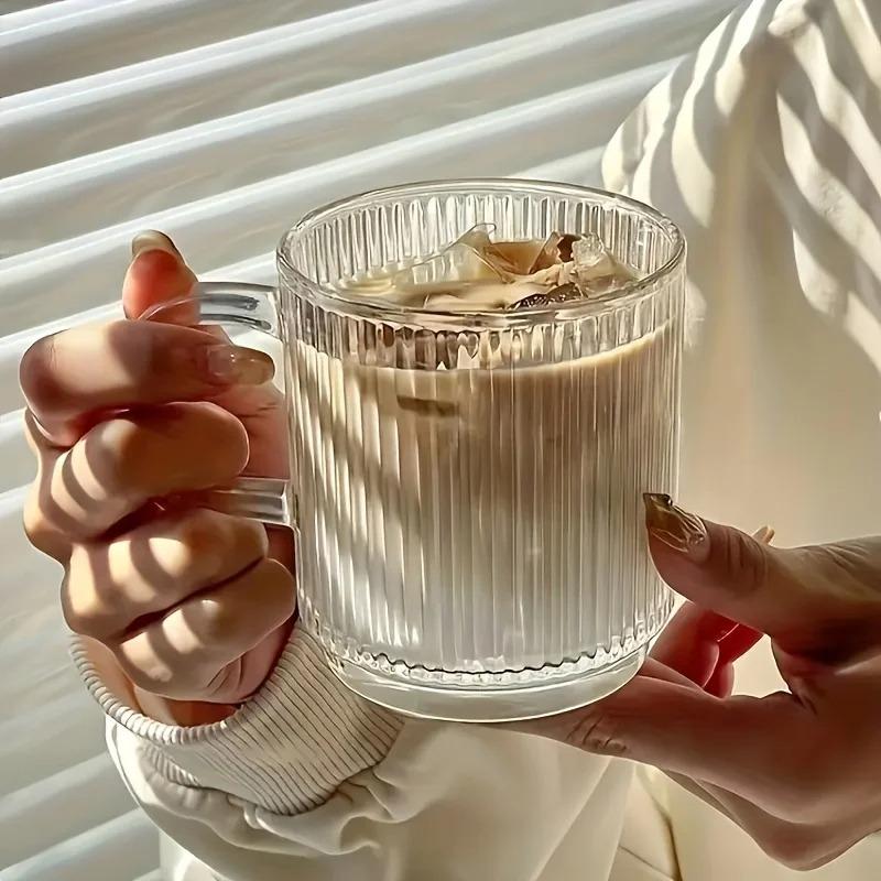 1/2PCS Vertical Grain Glass Coffee Cup 340ML Water Cup With Handle Suitable Iced Coffee Juice Cup Valentine's Day Gifts