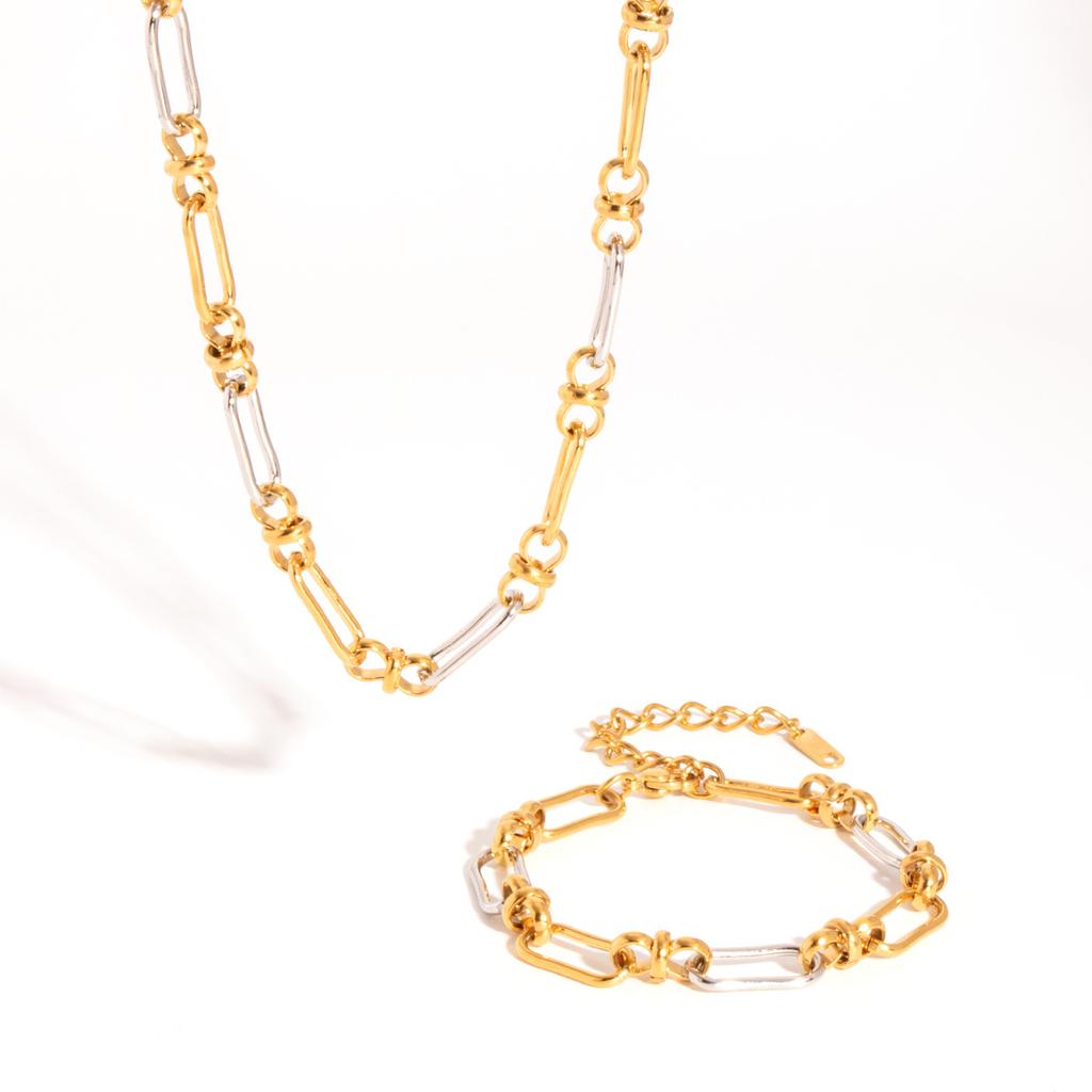 Simple Gold Silver Mix Color Necklace Bracelet Set Simple Metal Texture Unusual for Women Summer Waterproof Charm Jewelry