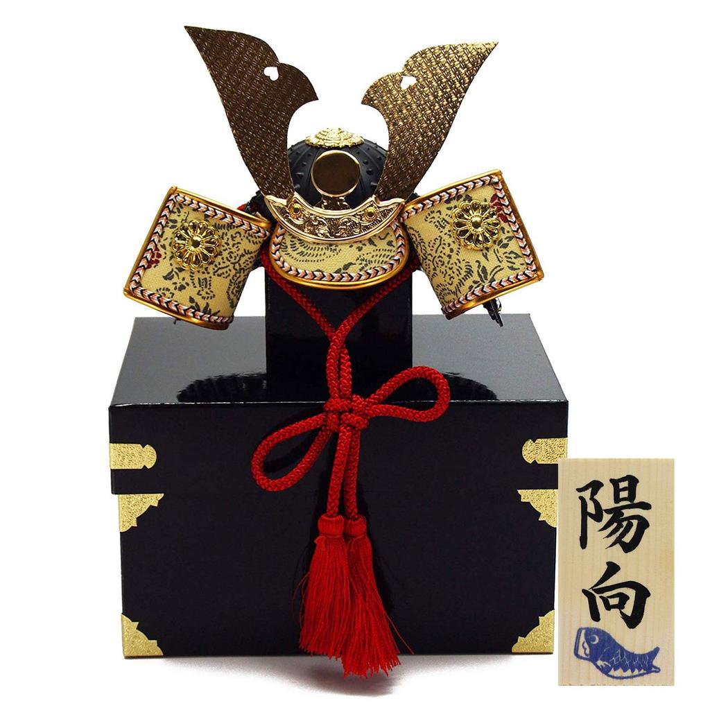 Osaka Choseido May Festival Helmet Compact with Name Engraving and Wooden Plaque Chirimen Long Helmet Doll, Ornament, Mini, (Shipped Separately),