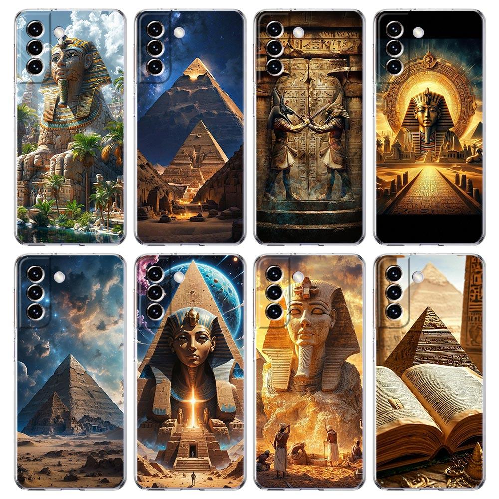 Phone Case For Samsung Galaxy S25 S24 S23 FE S22 Ultra S20 S21 5G S10 Plus S10E Soft Clear Cover Ancient Egypt God pyramid