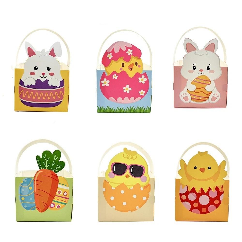 6pcs Egg Rabbit Carrot Easter Bunny Candy Boxes with Handle Candy Gift Bag Spring Parties