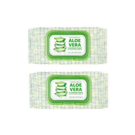 Nature Republic Soothing & Moisture Aloe Vera Cleansing Tissue is a premium, high-performance makeup removal solution that combines the legendary soothing power of 92% Certified Organic Aloe Vera with the convenience of a daily wipe. This special value 1+1 set provides two 80-sheet packs (total 160 sheets), ensuring long-lasting purity for your daily routine. These soft, high-quality tissues effectively dissolve stubborn makeup, excess sebum, and environmental pollutants while delivering instant hydration and cooling relief to stressed skin. The mild, non-stripping formula leaves your complexion feeling remarkably clean, refreshed, and calm—perfect for sensitive skin looking for a gentle, one-step cleansing experience.