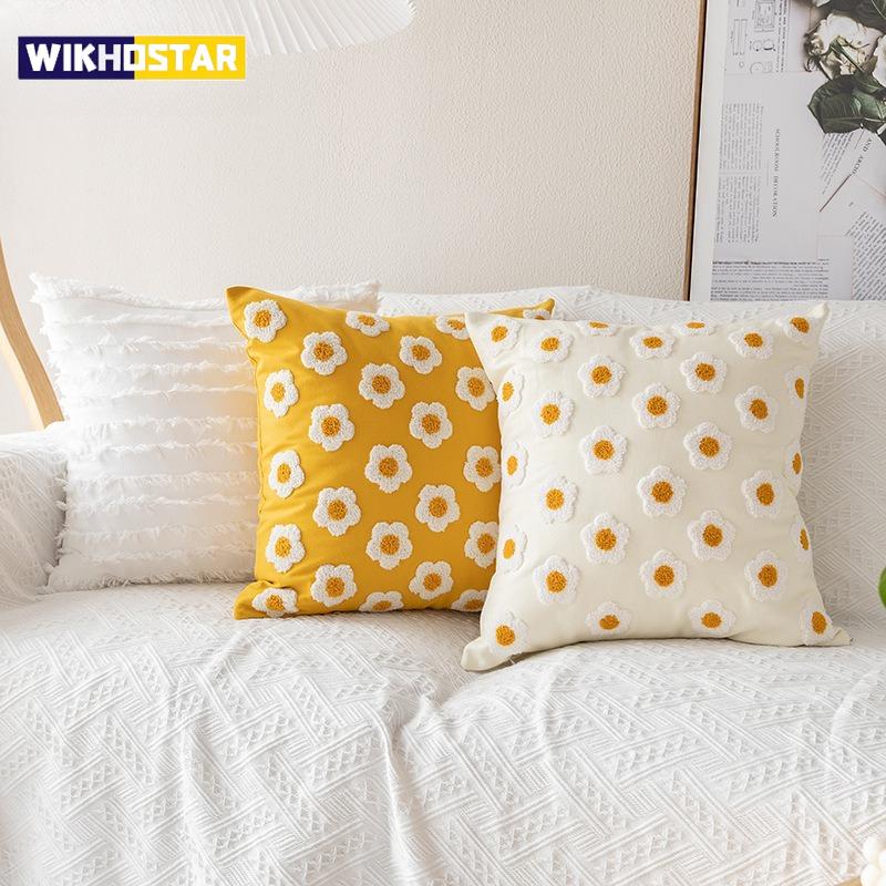 Chic Floral Cushion Cover Daisy Floral 45x45cm White Embroidery Pillow Cover Soft Cozy for living room
