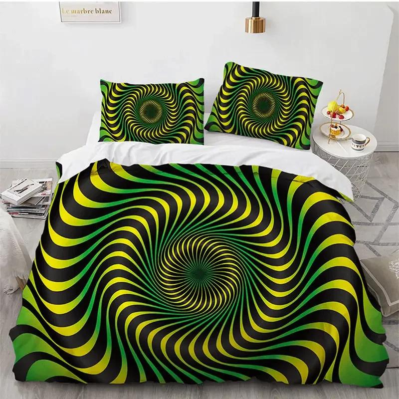 Psychedelic Swirl Soft Duvet Cover Abstract Geometric Beding Set Microfiber Twin King Comfortable Quilt Cover With Pilowcases For Children Kids Adult