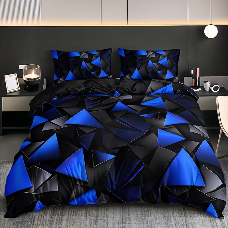 Geometric Gradient Plaid Soft Duvet Cover Set High-Definition Print Comfort Machine Washable Modern Home Decor for Dorms plus Bedroms