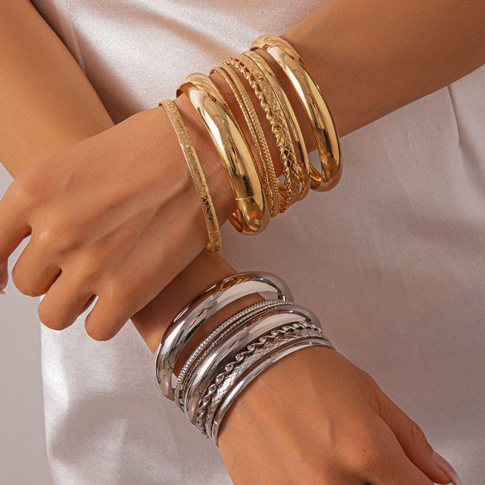 3/4/6/8Pcs Chunky Punk Metal Bracelets Multilayer Smooth Bracelet Set Friends Birthday Gift