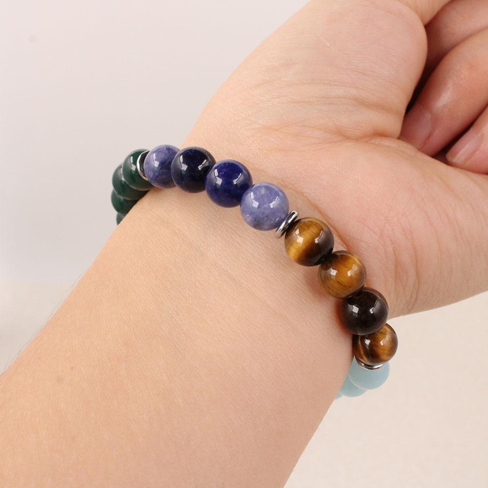 Festive Gifts Tiger Eye Sodalite Malachite and Aquamarine Beaded Bracelet Multicolor Fashion Jewelry for Daily Wear Simple Versatile Accessory
