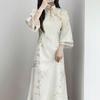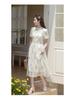 Women's Summer Qipao Dress: Chinese-Inspired Floral Print, Waist-Cinching, Puff Sleeves, Zipper, Mid-Length A-Line