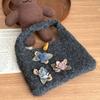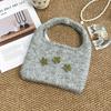 Horn Button Knitted Handbag Flower Phone Bag Casual Knitted Wrist Bag Travel
