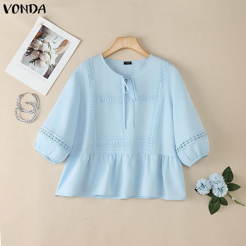 Features:Woven lace, bow tie, round neck, five quarter sleeve smock