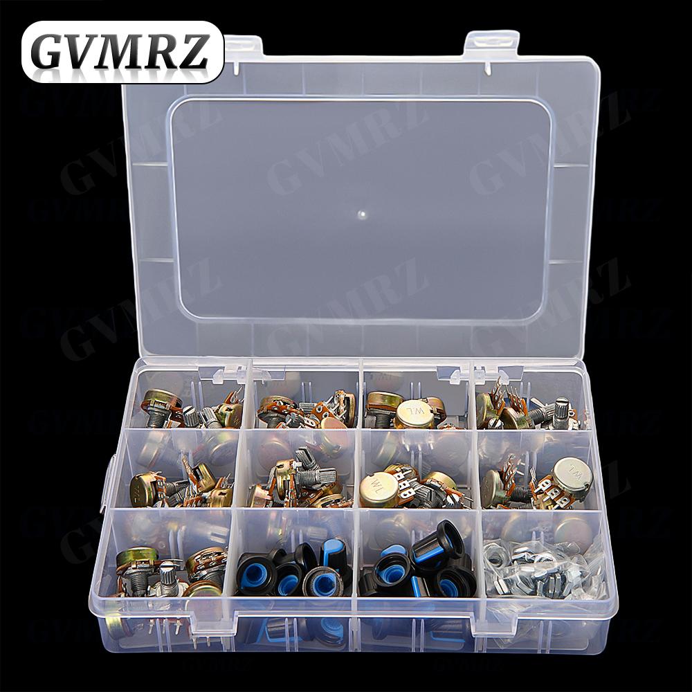 45PCS/Box WH148 Potentiometer 3PIN/6PIN kit 1k 5k 10k 20k 50k 100k 500k 1M ohm with Blue knob