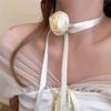 Black and white flower necklace rose choker neck flower neckband necklace female neck collar camellia clavicle chain
