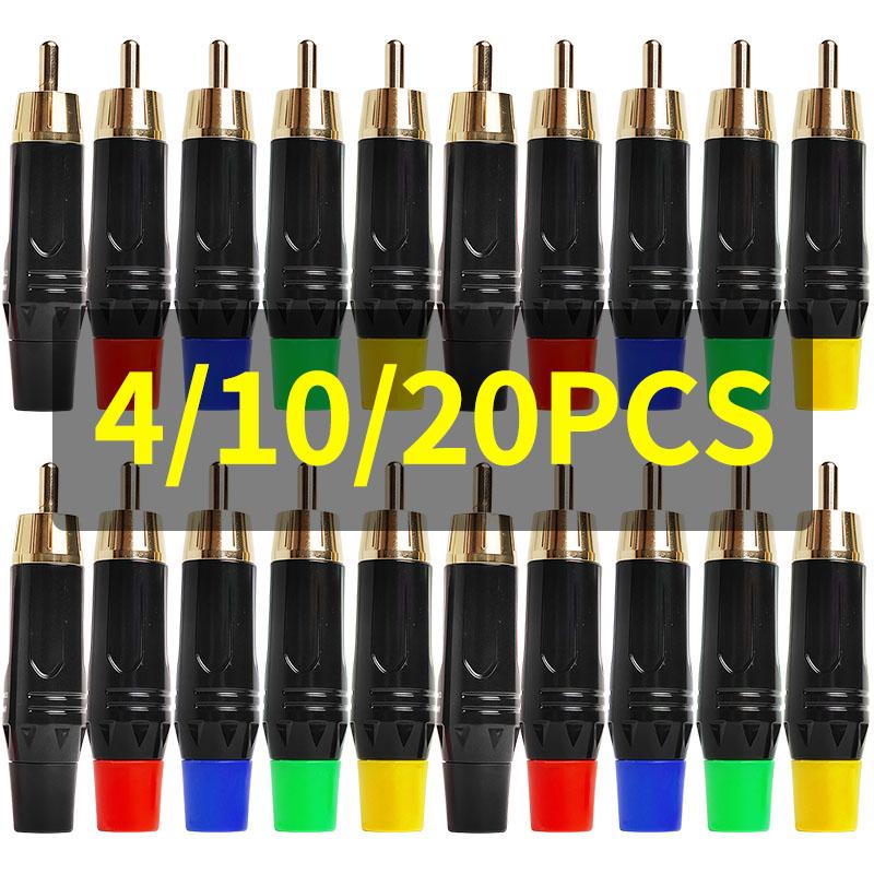 4/10/20pcs Gold RCA Phono Plugs - Coaxial AV Audio Video Solder Connector for Speaker PC