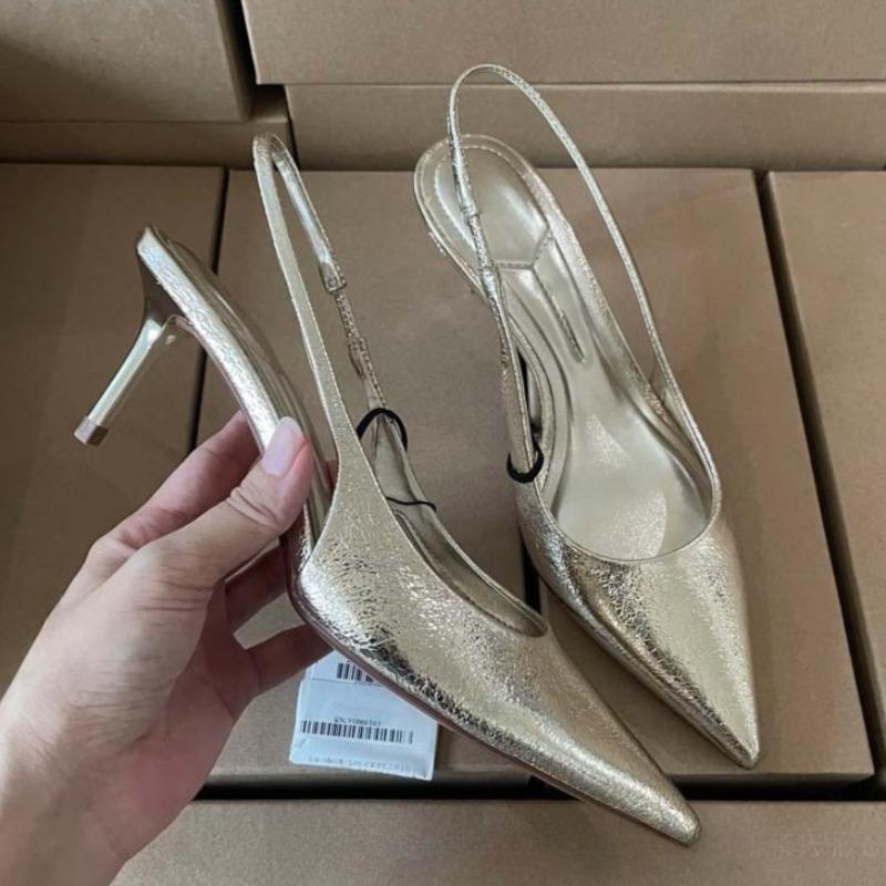 Soleist Slip on Women High Heels Office and Career Shoes Sexy Pointed Toe Concise Design Shiny Gold Evening Party Dress Slingback Pumps