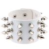 Bold Punk Design: 3 rows of sharp cone-shaped metal spikes studded on PU leather, creating an exaggerated gothic & rock aesthetic, perfect for punk, emo, and alternative style lovers.