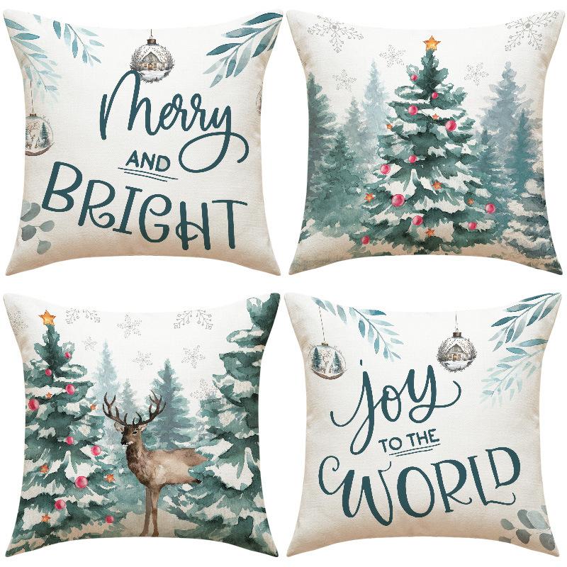 New Christmas Tree Deer Christmas Pillow Cover Linen Printed Pillow Cover Festive Room Sofa Ornament Cushion Cover