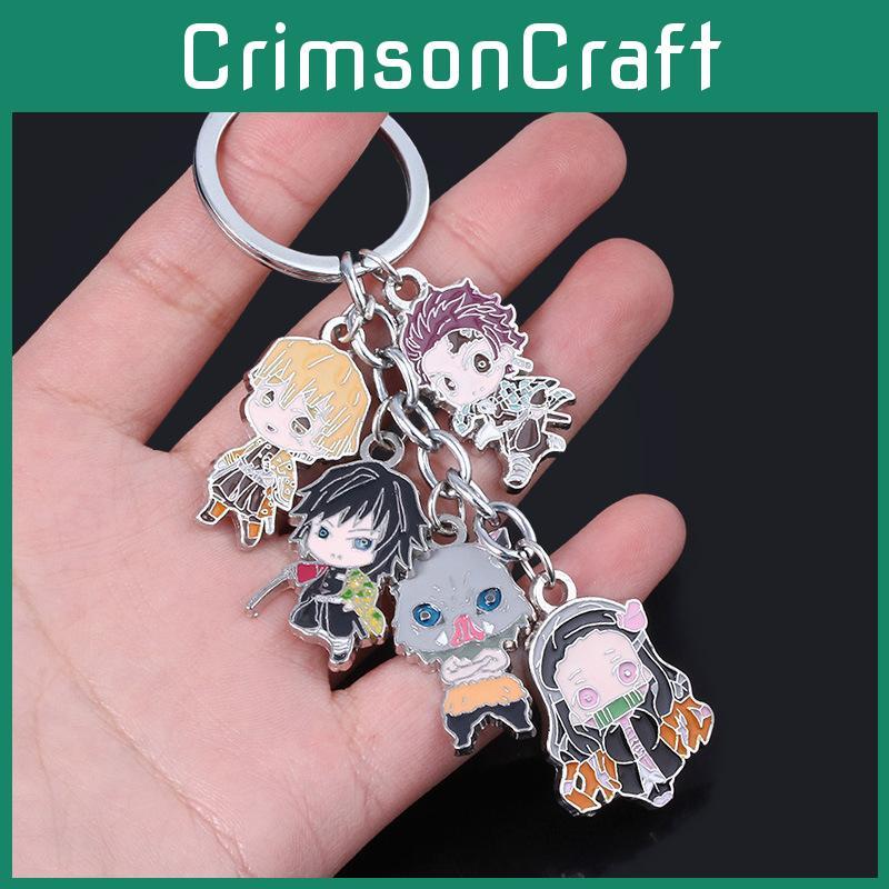 This colorful keychain features characters from the Demon Slayer anime, crafted from durable zinc alloy. it offers a lightweight yet sturdy accessory suitable for everyday use. Ideal for fans and collectors, it enhances backpacks, keys, or gift sets for various celebrations. Wipe clean with a dry cloth for maintenance.