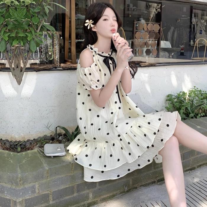 Elevate your summer wardrobe with this elegant and playful off-shoulder dress, crafted especially for a petite frame. Designed in a chic French style, it features a classic polka dot pattern and a flattering short, fluffy silhouette. Made entirely from high-quality polyester, this dress offers both comfort and style, making it ideal for warm-weather outings and chic summer occasions.