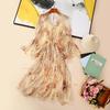 Experience the essence of spring with this enchanting dress made from 100% Mulberry silk. The delicate floral print captures the beauty of nature, while the soft, flowing ruffles add a touch of elegance and grace. Perfect for any tea break or special occasion, this dress combines luxury and comfort, making it an exquisite addition to your wardrobe.