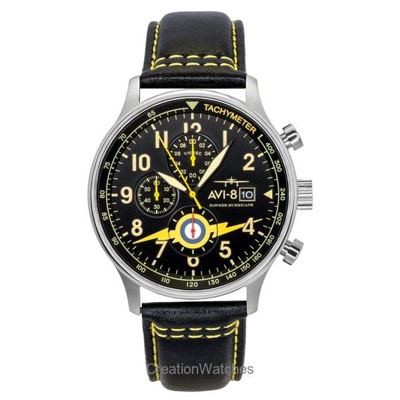 AVI-8 Hawker Hurricane Classic Chronograph Leather Strap Black Dial Quartz AV-4011-0Z Men's Watch With Extra Strap