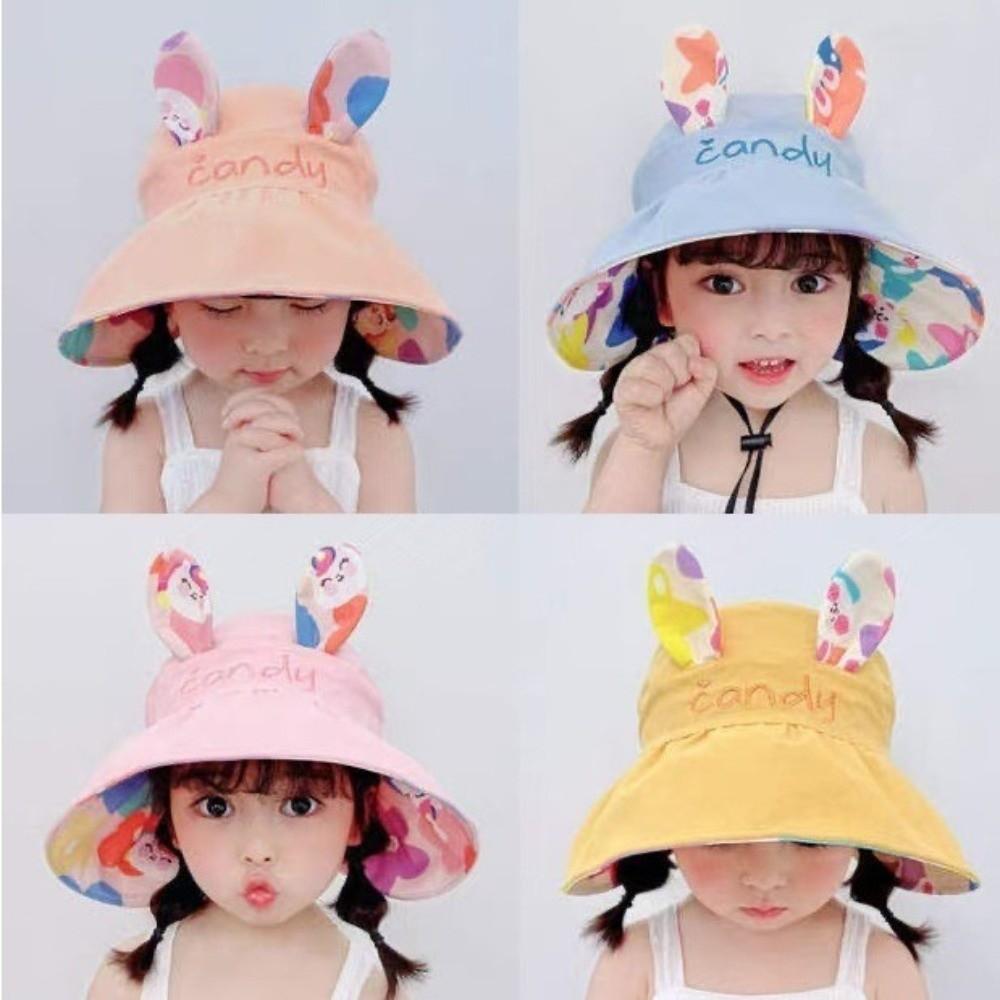 Cotton Children Rabbit Ears Sun Hat Adjustable Wide Brim Hat Kids Empty Top Sunscreen Hat Running