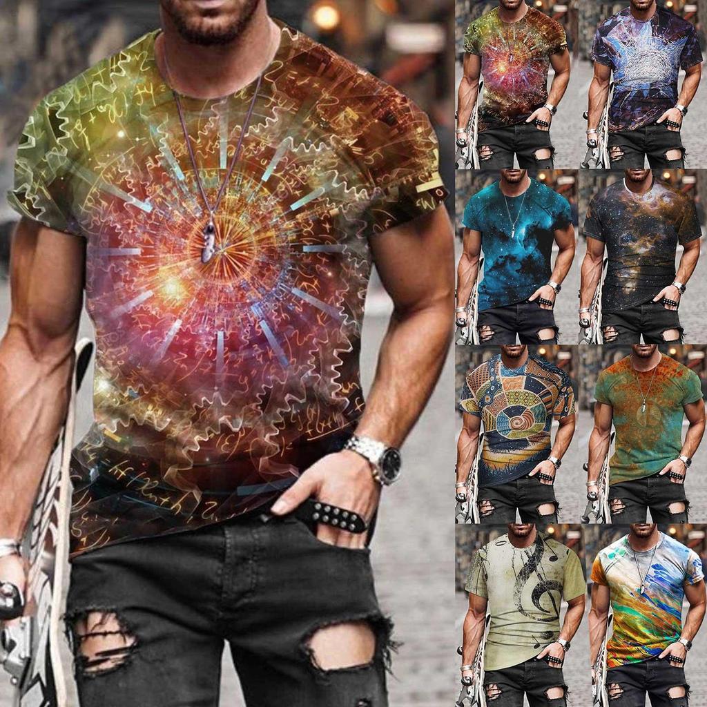 Men's Street Fashion Casual Interesting Design Printed Round Neck Short Sleeve
