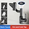 Stainless Steel Basin Faucets Bathroom Mechanical Arm Hot and Cold Mixing Tap Digital Display Household Universal Rotation