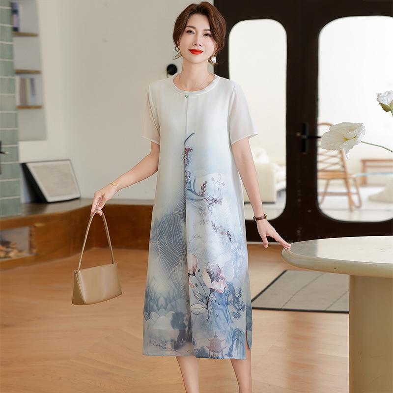 Experience comfort and style with this beautifully crafted summer dress, designed specifically for middle-aged women. Made from premium chiffon, this dress offers a lightweight and breathable feel, ideal for warm weather. Its short sleeves provide ease of movement, while the knee-length cut ensures a flattering silhouette. Inspired by traditional Chinese fashion, this dress features subtle design elements that add a touch of elegance and cultural richness. Perfect for both casual outings and special occasions, this dress will keep you feeling cool and looking sophisticated all summer long.