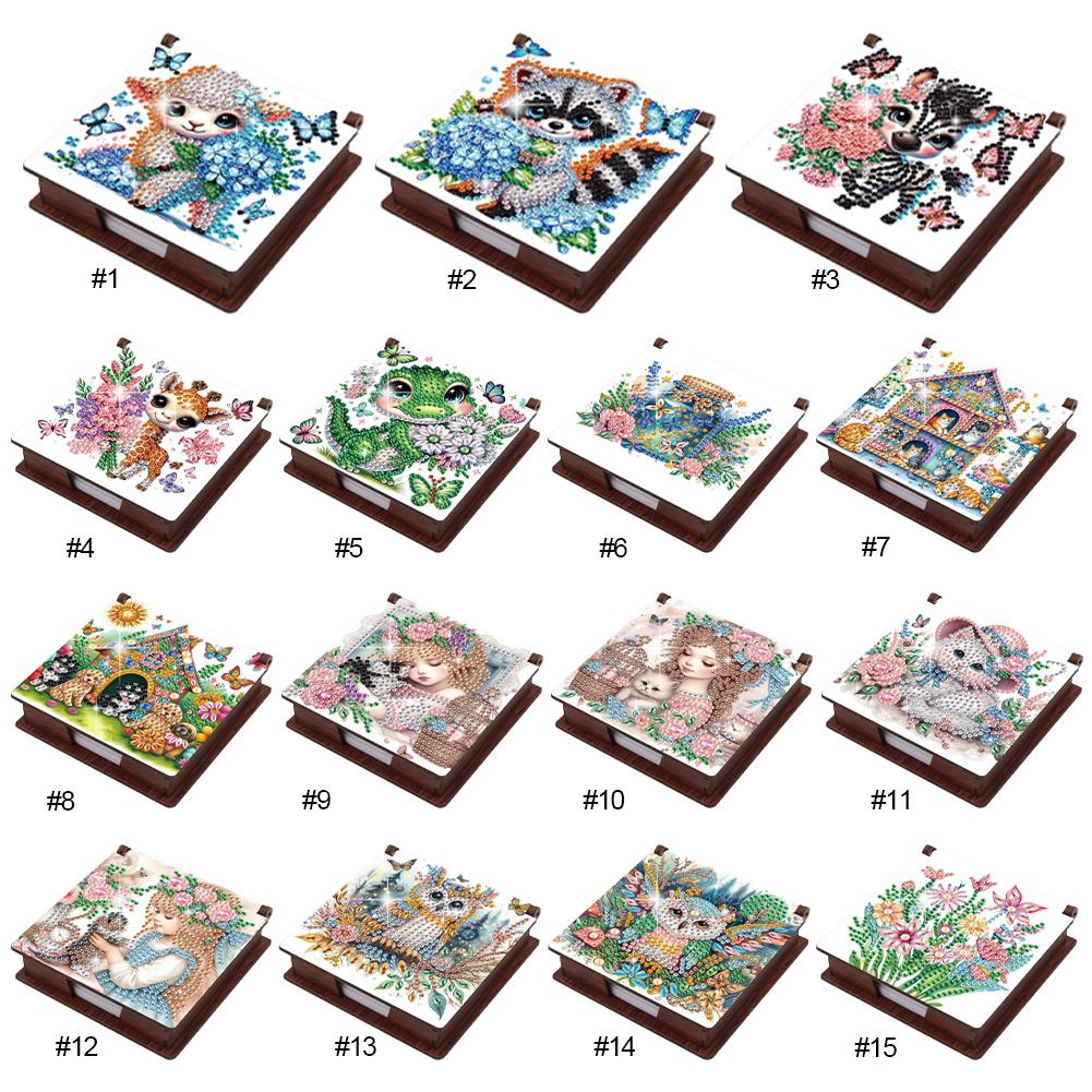Animals Gem Painting Memo Pad Holder Mosaic Kit Contains 160 Sheets of Paper Rhinestones Post It Dispenser for Adults Beginners