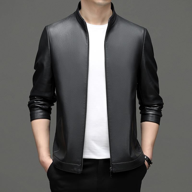 Leather Jacket Spring and Autumn Stand Collar Leather Jacket Men's Casual Middle-aged Dad Wear Sheepskin Leather Jacket
