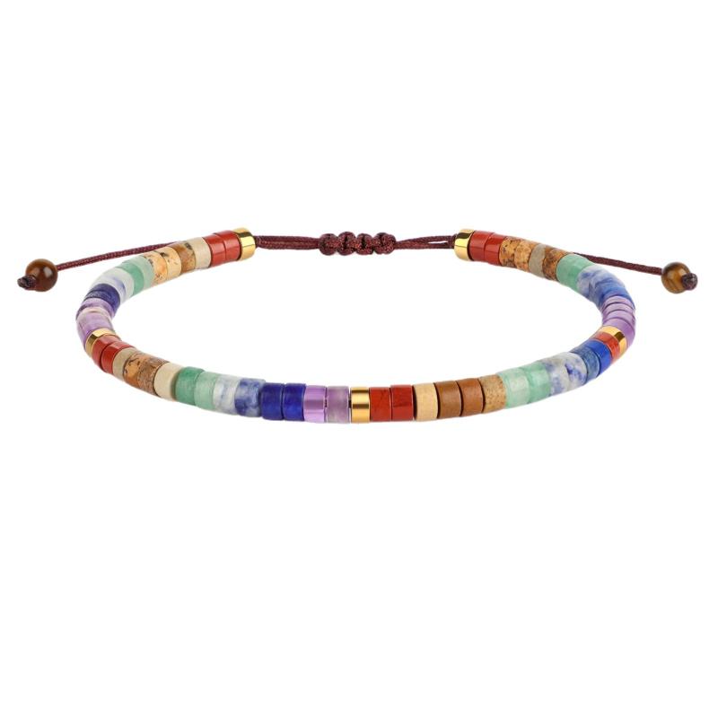 7 Chakra Bracelet Natural Stone Beaded Woven Jewelry For Women With 7 Chakra Colors Red Orange Yellow Green Indigo Violet