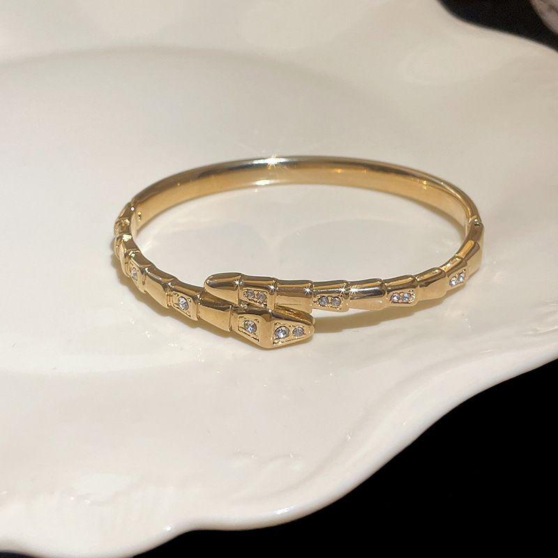 Zircon Snake Cross-open Bracelet, High-end and Exquisite Bracelet, Light Luxury and Trendy Bracelet