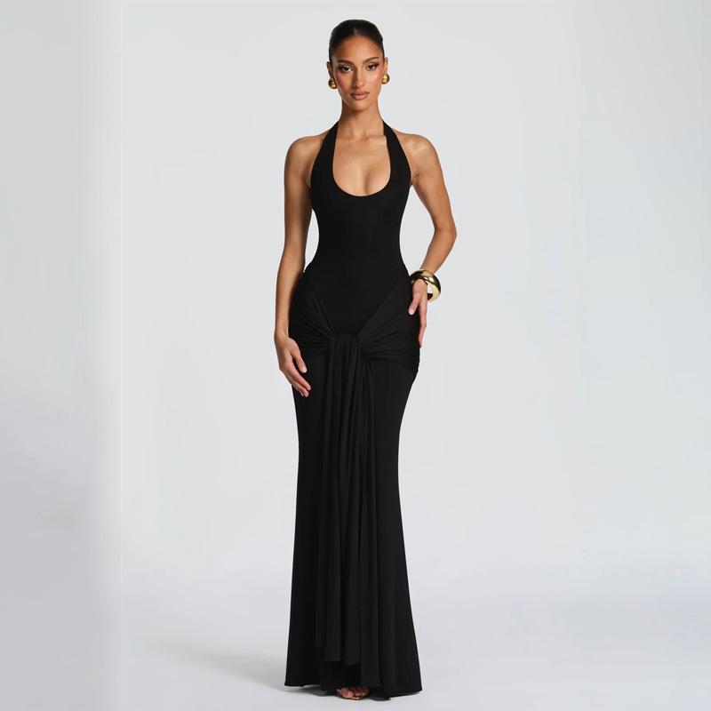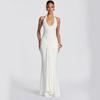 2025 Women's European & American Style Spliced Strappy Long Slim Fit Halterneck Formal Dress