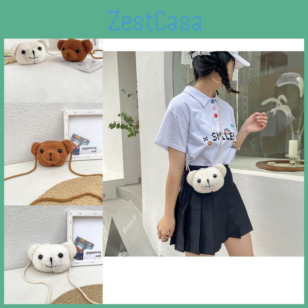 Cute Cartoon Bear Head Mini Crossbody Bag Plush Nylon Shoulder Bag For Students