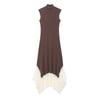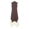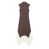 2026 Spring European Style Satin Dress with Eyelash Lace Trim